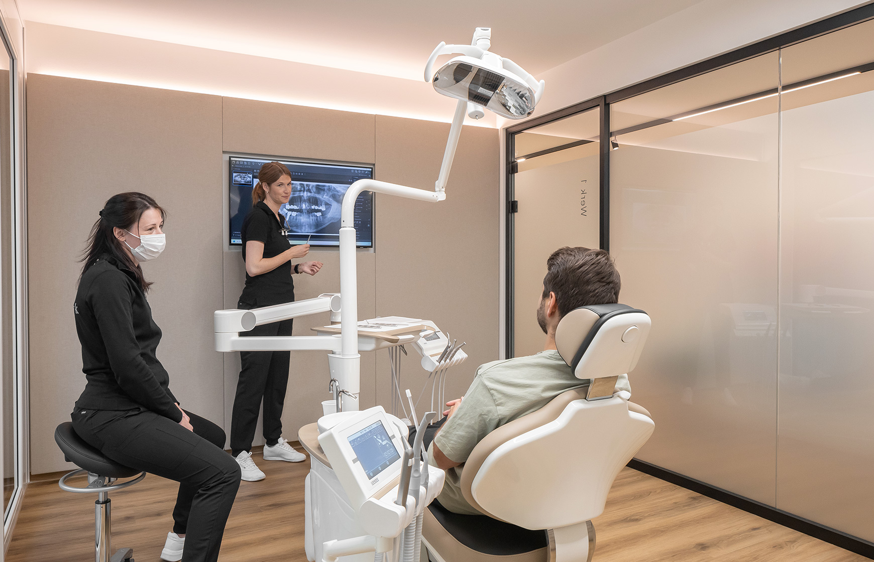 Nach der Untersuchung nehmen wir dich mit ins Boot: Wir zeigen dir deine Röntgenbilder, erklären dir alles verständlich und besprechen mit dir, was aus zahnärztlicher Sicht sinnvoll wäre – inklusive möglicher Alternativen. Du bekommst einen klaren Überblick über Behandlungsdauer, Kosten und Aufwand. Dann entscheidest du, wie’s weitergeht.