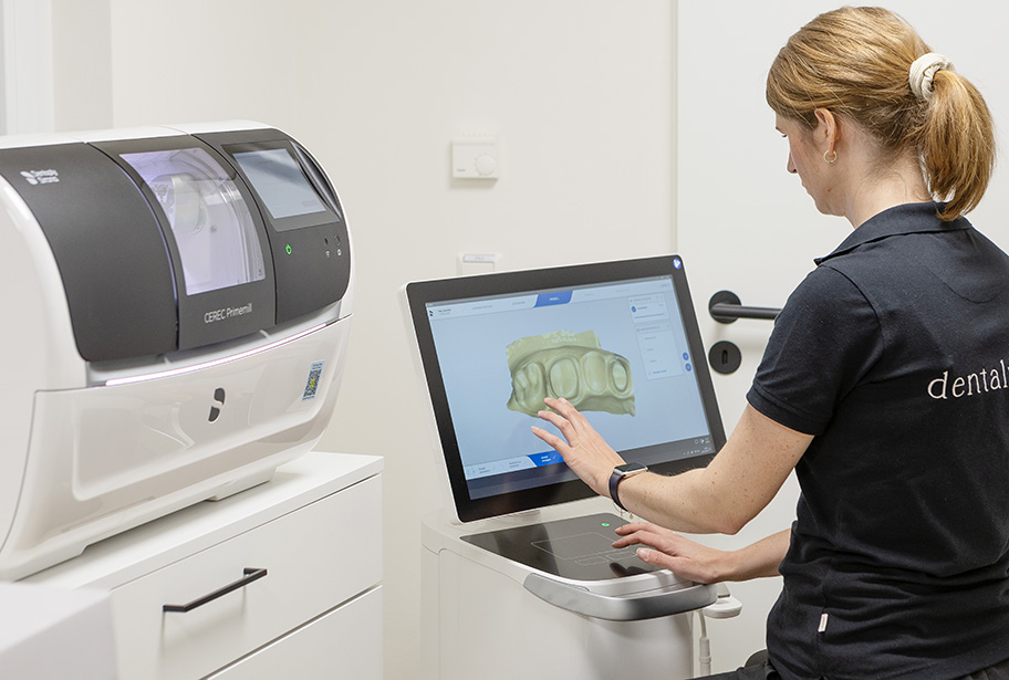 Mit CEREC ist es uns möglich, Zahnkronen in nur einer Sitzung herzustellen und einzusetzen. Dank der modernen 3D-Technologie fertigen wir passgenauen Zahnersatz aus Vollkeramik direkt bei uns in der Praxis – ganz ohne Abdruck und ohne Wartezeit. Für dich heißt das: Top-Qualität, kurze Wege und Zahnersatz, der passt und klasse aussieht.